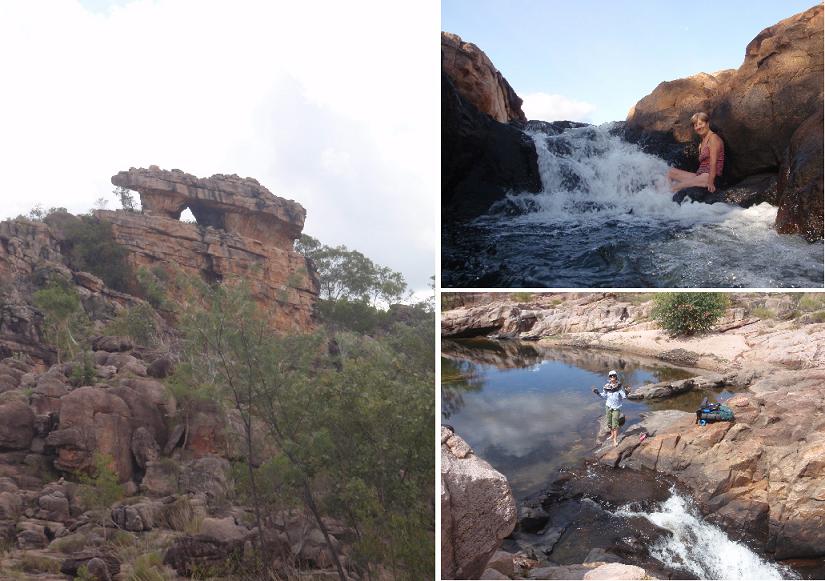 The next day we powered our of camp, keen to hit the sandstone and make camp early. The heat of the day made us finally appreciate the clouds and rain of the previous days – man it was sticky! We made it to the sandstone in record time and had set up camp by our own private pool and spa on a sandy bank. This left plenty of time to explore the amazing rocks high above camp before sunset. We saw some great cave drawings and views from above.